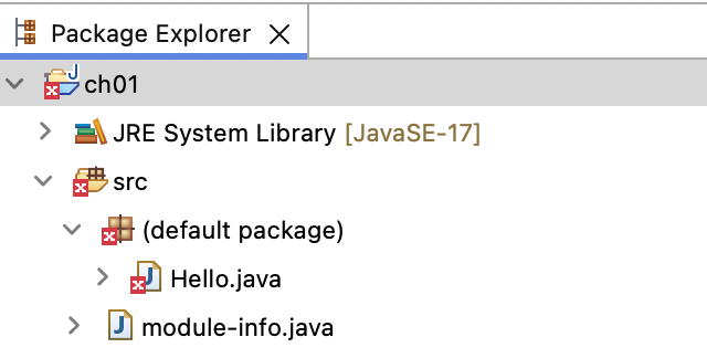 우측 Package Explorer에서 module-info.java파일을 지우자.